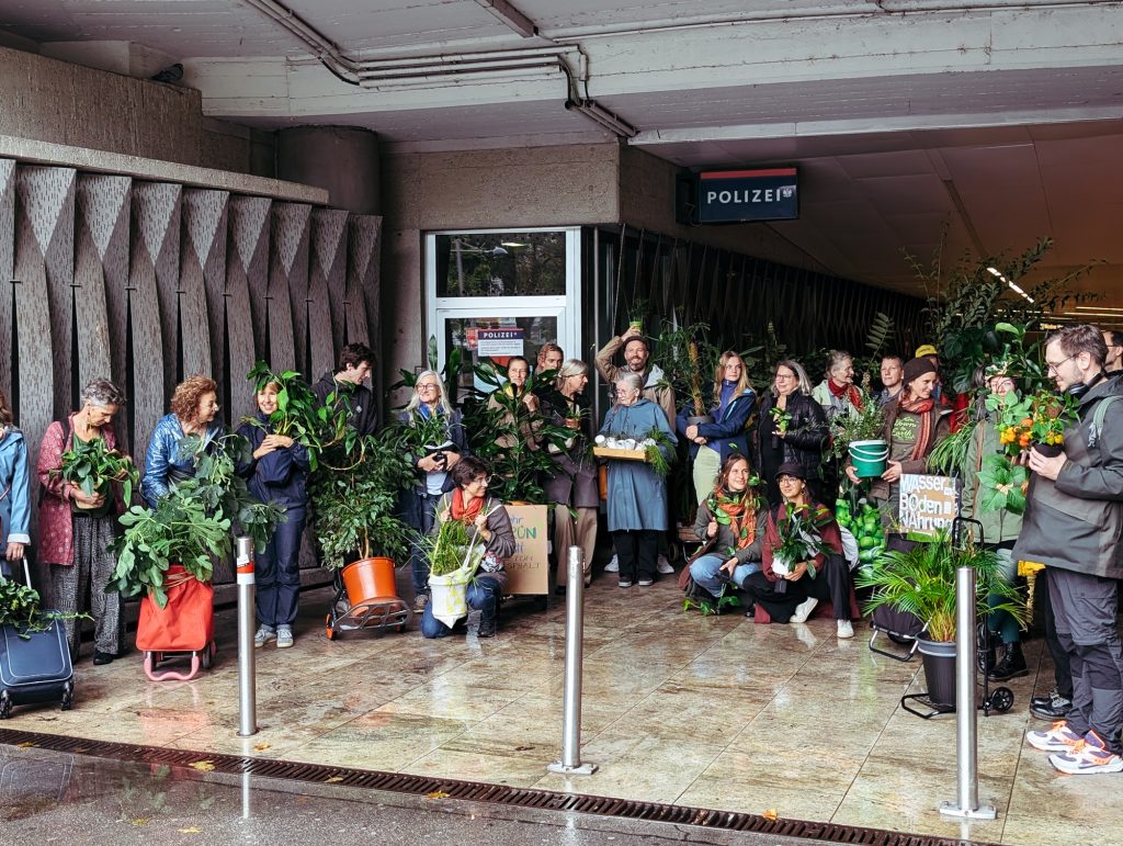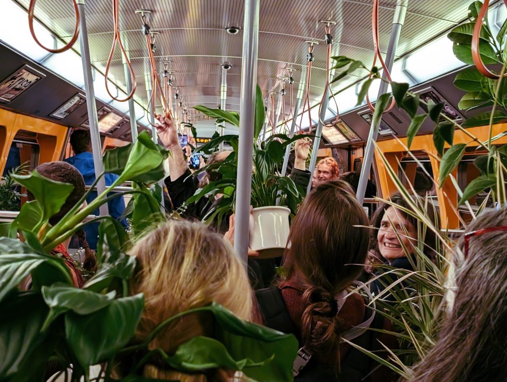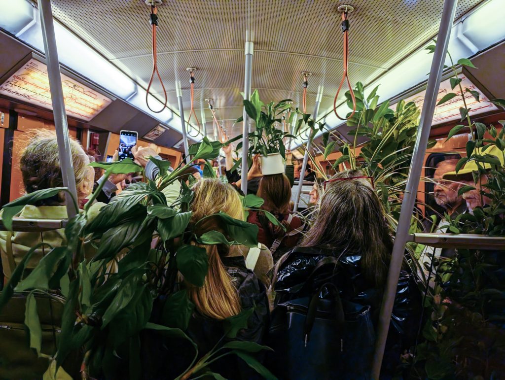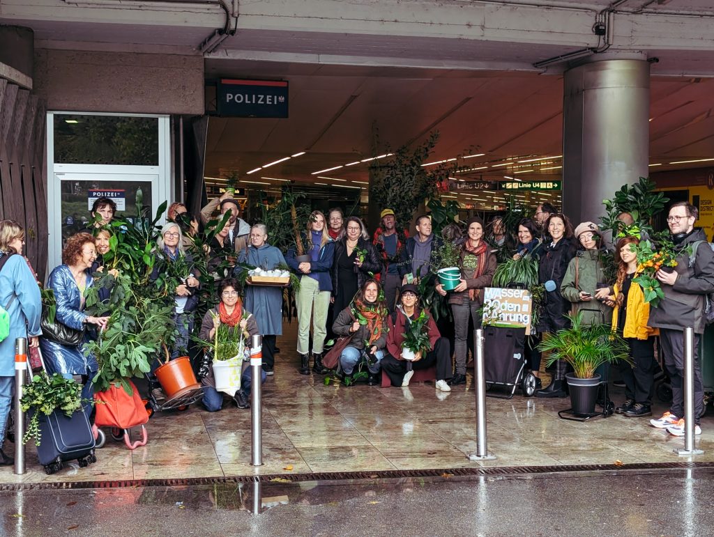 Today, a renaturation flash mob took place on the streets and in the subway in Vienna, initiated by Viennese artist and climate activist Tom Poe and supported by “Klimabox” and “Artists For Future Austria”. Over 50 people equipped with their (potted) plants and sound boxes with nature sounds to renature the public space together.